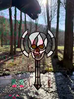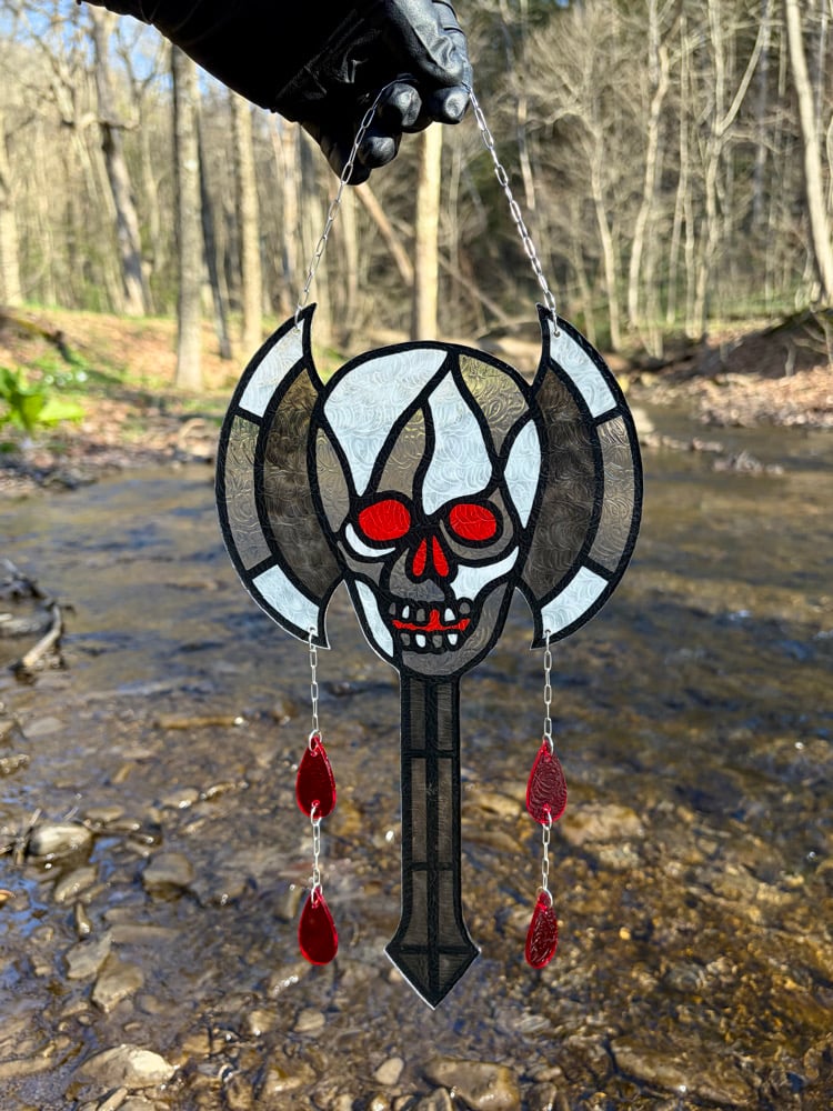 These tickets are for the Battle Axe Faux Stained Glass raffle. The piece is a One Off and I will never make another one like it. That being said, the winner will be the only person to ever own this! The drop down menu includes two options for tickets. $10 gets you a single ticket, $20 gets you three tickets!